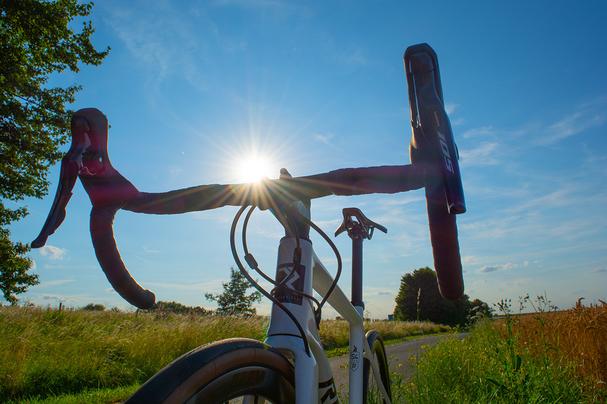 In Kombination mit der Carbon-Gabel entsteht ein Fahrgefühl, das sich am besten als ruhig beschreiben lässt. Gerade auf längeren Geraden, wenn der Blick über die Felder geht und die Straße sich in die Landschaft einfügt, verschwindet das Rad fast aus dem Bewusstsein. Man sitzt nicht mehr auf einem System, man bewegt sich durch Raum.